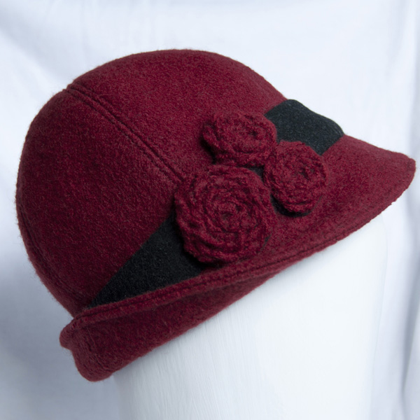 Wool Cloche Style Hat with Flowers